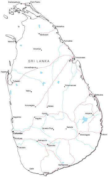Sri Lanka Black & White Road map in Adobe Illustrator Vector Format