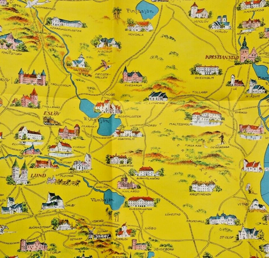 Skåne Sweden Stunning Fold Out Map Travel Tourist Guide Brochure
