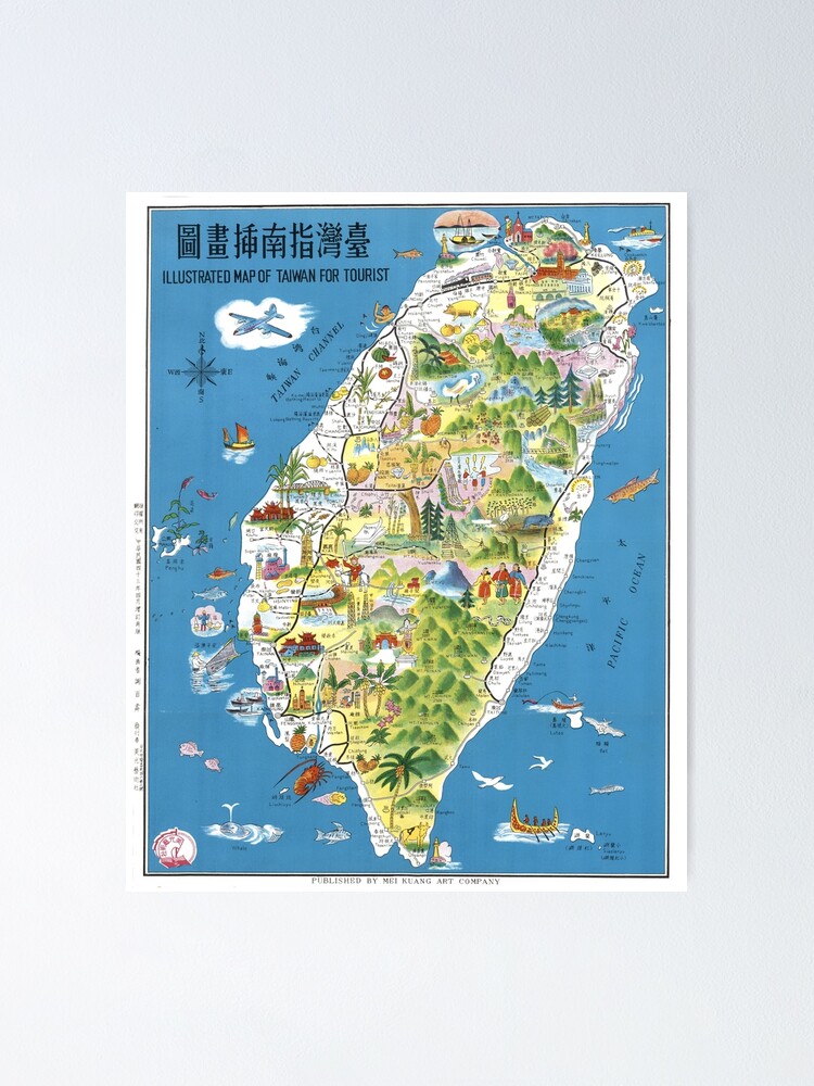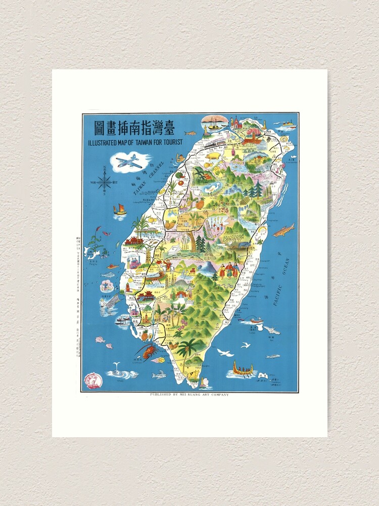 Tourist map of Taiwan with selected places of interest 1954″ Art